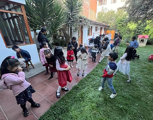 El Día de la Madre, una gran fiesta en Perú. Algunos de nuestros niños participan en las actuaciones escolares. Los de tres años interpretan "Tu angelito soy yo".