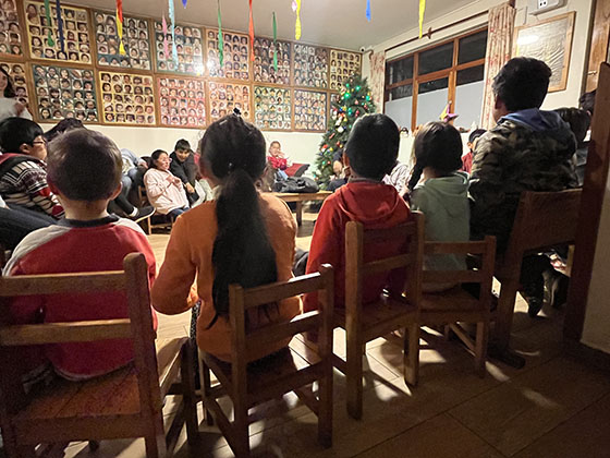 Aldair, que en febrero con 16 años pudo regresar con sus hermanos después de muchos años en Amantaní, da por iniciativa propia una charla a los niños mayores sobre su experiencia y las dificultades de la vida fuera del Hogar para que valoren y aprovechen su presente.